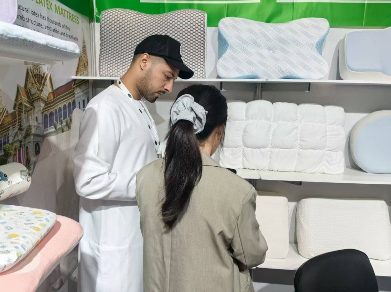 დუბაის ძილის ამ გამოფენაზე ჩვენ გვაქვს პატივი, ვაჩვენოთ ჩვენი ძილზე ორიენტირებული ბალიშები მნახველებს მთელი მსოფლიოდან. ჩვენ მიძღვნილი ვართ წარმოვადგინოთ ორი ყველაზე გაყიდვადი ბალიში ბაზარზე:ბუნებრივი ლატექსის ბალიშიდა თანამედროვე ჭკვიანი მასალამეხსიერების ქაფის ბალიში. ლატექსის სწრაფი აღდგენის და ალერგიის საწინააღმდეგო თვისებები დიდად სარგებლობს ლატექსის მოყვარულთა მიერ. იმავდროულად, მეხსიერების ქაფის საბოლოო მორგება უზრუნველყოფს ღრმა ძილს. ჩვენმა სიღრმისეულმა კომუნიკაციამ მომხმარებლებთან ადგილზე გვაგრძნობინა მათი სწრაფვა ბალიშებისკენ. ჩვენ მტკიცედ გვჯერა, რომ ძილის სხვადასხვა ჩვევებისთვის პერსონალიზებული არჩევანის უზრუნველყოფა ხარისხიანი ძილის გასაღებია.
